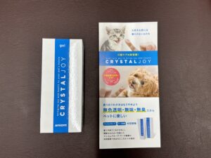 CRYSTAL JOYは無色透明・無味・無臭でペットに優しい歯磨きジェルです。歯周病は万病のもと。ぜひ日々の口内ケアにお試しください。